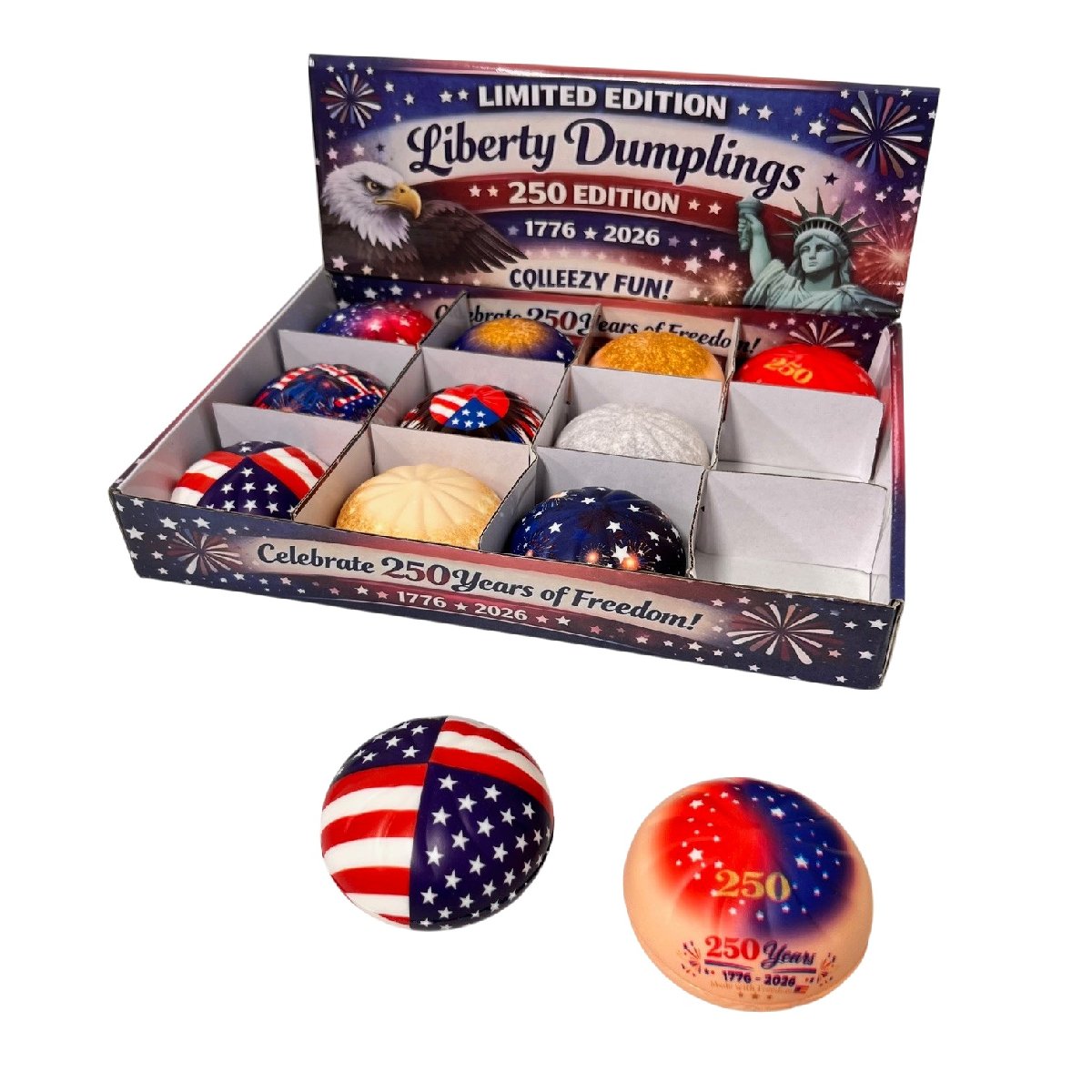 Dumpling Slow Rise Squishy Bun with Steamer Toy [Americana-250th]