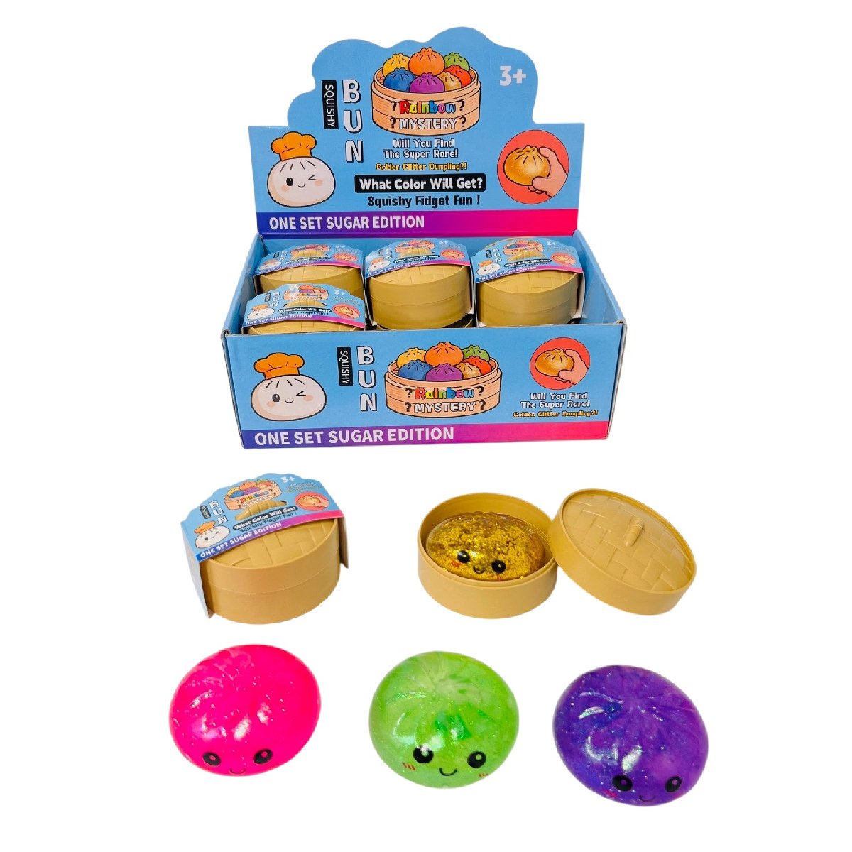 Dumpling Gel Squish Bun with Steamer Toy [Glitter Gel/Smiley Face]