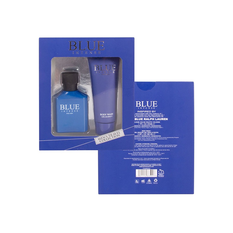 2pc Set Men's Eau De Parfum [Blue Intense] 1.7oz Bottle/2.8oz Body Wash