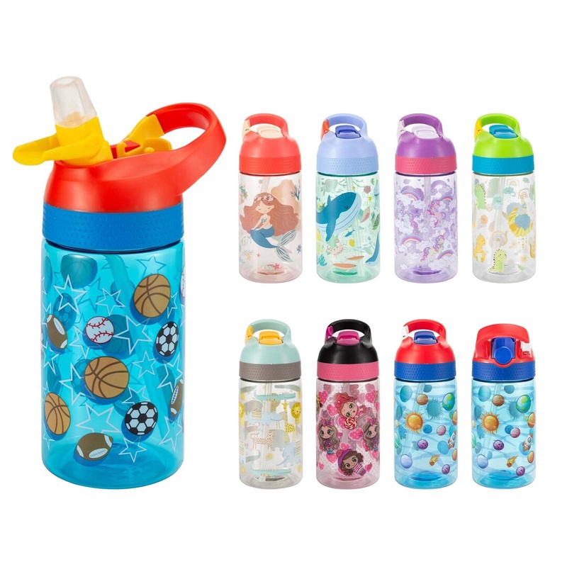 Splash Plastic Child's Printed Water Bottle 17oz [Flip Straw with Clip Handle]